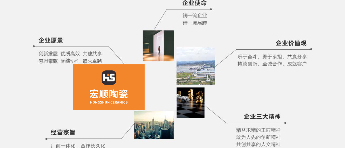世界陶瓷看中國,中國陶瓷看佛山,佛山金滿意陶瓷、宏順陶瓷就誕生于佛山,公司創(chuàng)立以來,以“開拓進(jìn)取,平等互利,物美質(zhì)優(yōu),服務(wù)周到”為經(jīng)營理念,堅持以人為本,以科技為動力,以市場為導(dǎo)向